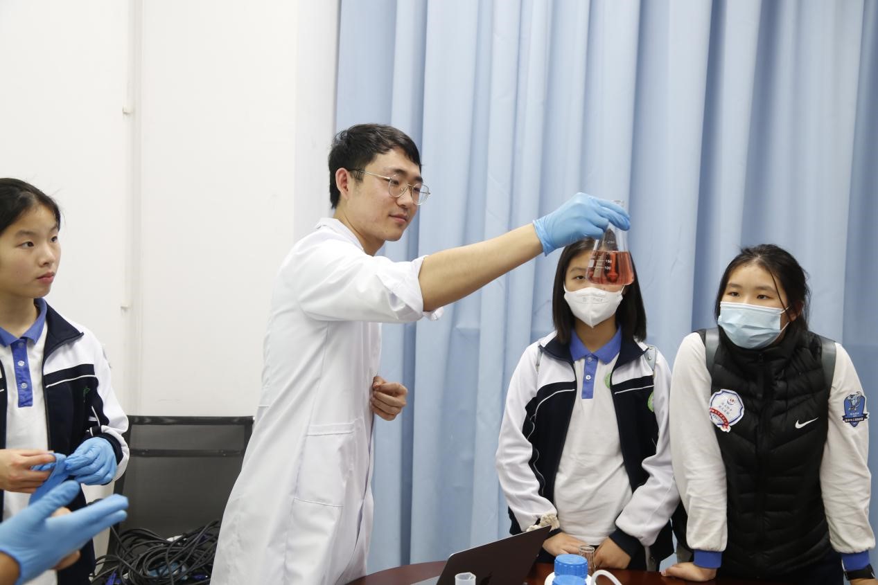报告结束后,同学们在老师的带领下,分两组有秩序地参观了高等研究院中央实验室和金融实验室。实验室老师向学生们介绍了原子力显微镜、激光共聚焦显微镜的原理及优缺点,ICP-MS电感耦合等离子体-质谱仪如何分析自然界之中痕量元素的含量等。在混沌量化投资实验室中,老师耐心地向同学们介绍了服务器的运行、股票操作及大数据预测处理模式。又在研究生赵烜学长的带领下动手做了简单的化学实验尝试。