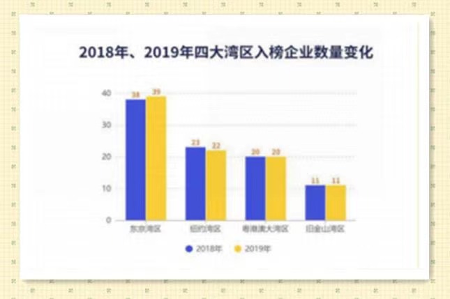 世界 500 强企业总部。东京湾区最多,有 60 个,旧金山湾区则是 28 个,纽约湾区为 22 个,粤港澳大湾区是 16 个。