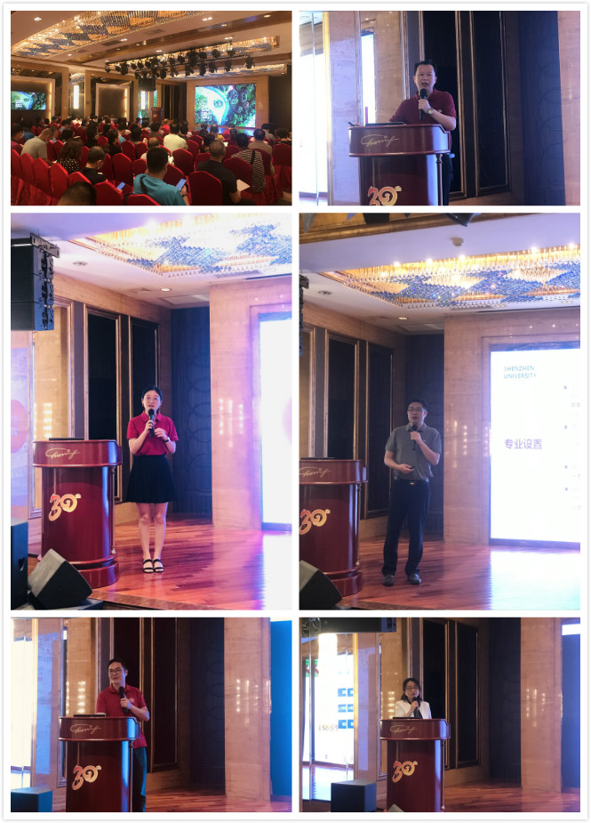 5月14日下午,深圳大学2021年本科招生宣讲会(江门站)在江门丽宫国际酒店万豪厅举行。当天虽然是工作日,活动仍然吸引了近百名家长考生参与。宣讲会上,现场首先播放了深圳大学的招生宣传片,生动的画面和深大学子的现身说法让在场考生家长们对深大有了更直观的认识和了解。随后,招生办公室李智军主任从深大简史、学科实力、荔园生活、培养特色和往年录取情况等角度作了全方位的介绍,充分展现了深大的办学实力、活力与魅力,并针对考生家长最为关心的招生政策进行了详细讲解,让家长们对深大有了较为全面的了解。接着,人文学院王立新教授学校的环境、学院的培养特色、培养质量及成效等方面介绍了深圳大学人文学院的基本情况和优势。王教授还强调:人文学院以及深大对学生的培养都非常用心,师生关系非常融洽。这是很重要的一点:因为解除学生对老师的心理紧张、融洽师生间的关系是释放学生生命能量、培养学生才能的重要前提。随后;随后,经济学院沈小平教授从“什么样的学生适合经济学院”、“深大经济学院的基本概况及培养特色”以及“深大经院的录取政策”等角度详细介绍了深大经院的有关概况;再接着,计算机与软件学院梁正平副教授从学院的发展沿革、专业设置、教学特色、师资队伍、科研平台、人才培养、录取情况等方面详细展示了学院的基本情况;最后,高等研究院副院长韦阳博士介绍了学院的培养特色、学生的毕业去向以及招生选拔方式,充分展现了学院“特区学院、学霸学院、政府加持”的特色。最后的提问咨询环节,针对家长们提出的各类问题,招生办和各学院一一进行答疑解惑,现场气氛十分热烈。许多家长表示,对深大有了更深的了解,对深大的实力也有了进一步的认可。