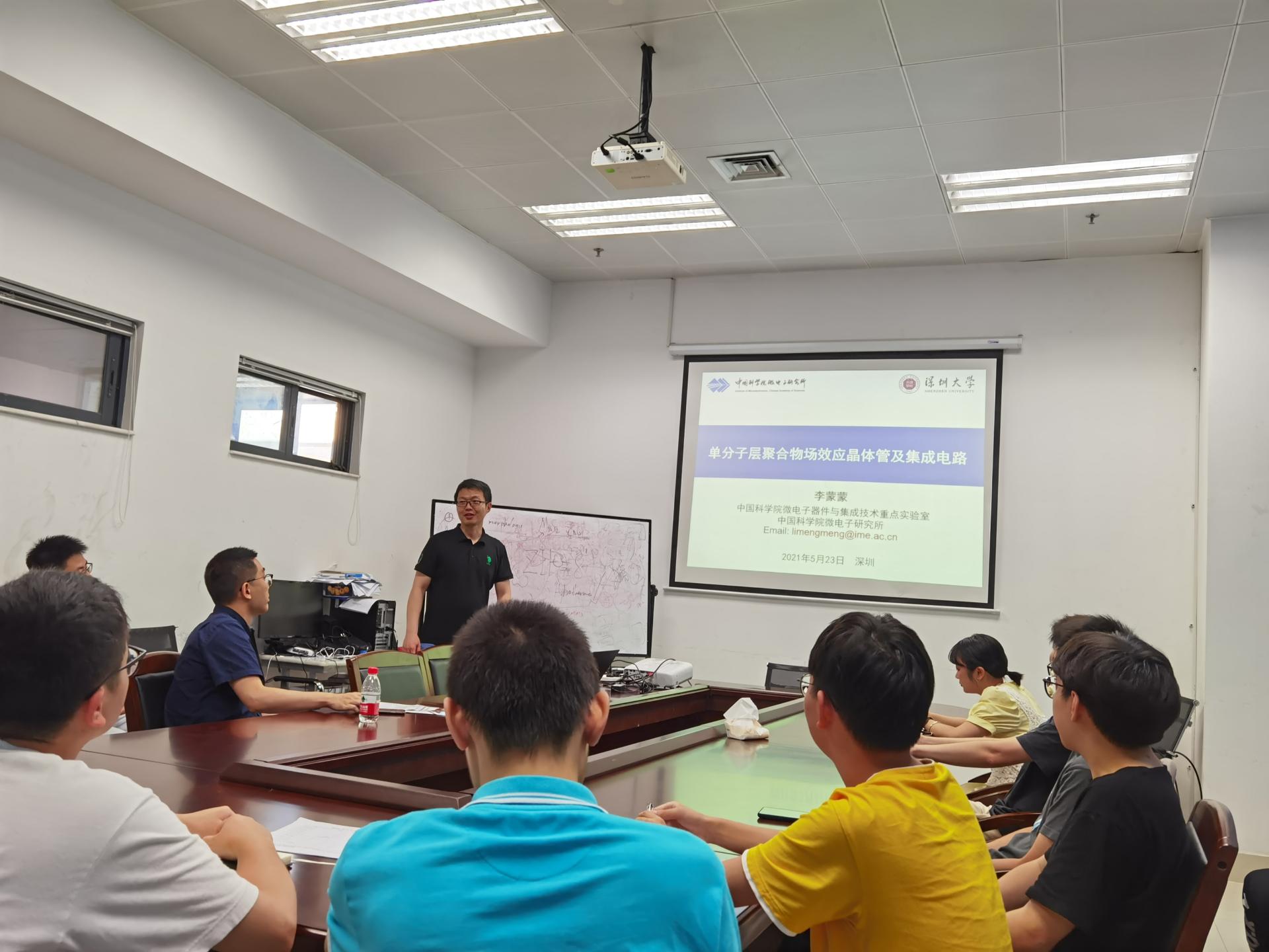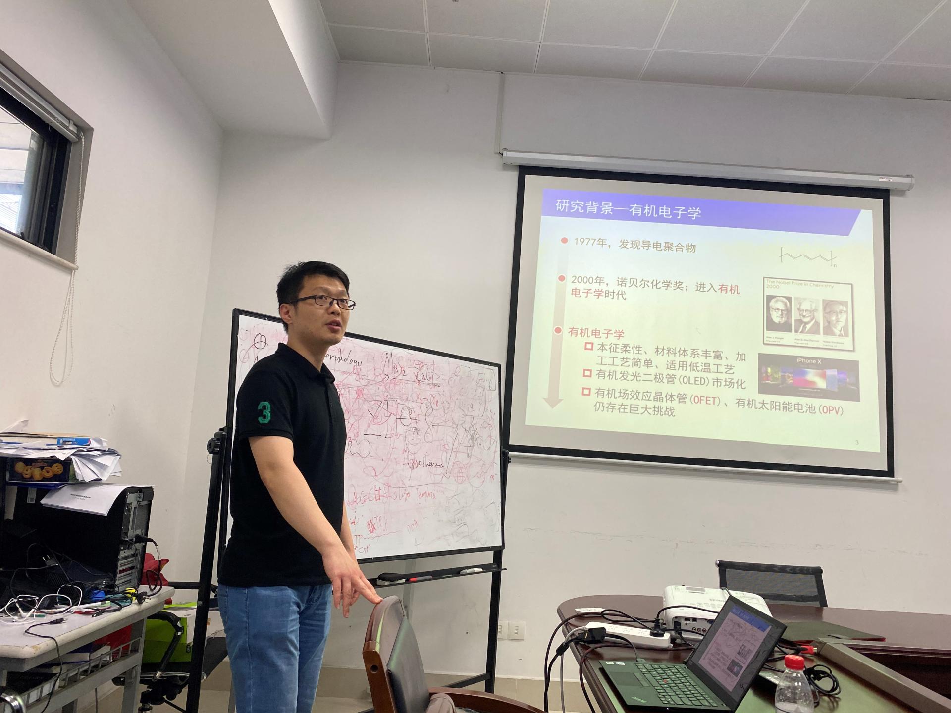 下午3:00,李蒙蒙研究员在致腾楼201会议室进行了题为“单分子层聚合物场效应晶体管及集成电路”的报告。在有机柔性电子学中,有机场效应晶体管是最重要的基础元件之一,而基于有机半导体单分子层的电子器件更是该领域的前沿热点之一,但目前相关研究主要针对结晶性较高的共轭小分子半导体材料。与之相比,聚合物半导体的长分子链显著增强了材料的本征柔性,在柔性器件方面具有更明显的优势;但其形成的无序结构极大地限制了其结晶性和电荷传输。李蒙蒙研究员分享了他通过调节聚合物半导体的溶解温度精确控制聚集程度的研究工作,后续通过对聚合物聚集态以及器件界面的进一步优化实现了高性能的单分子层聚合物场效应晶体管。