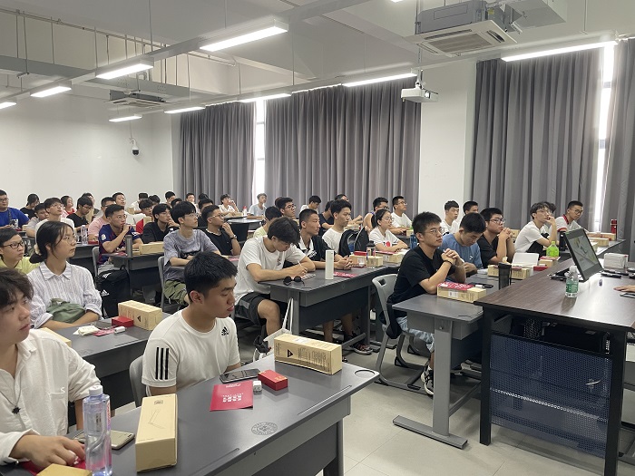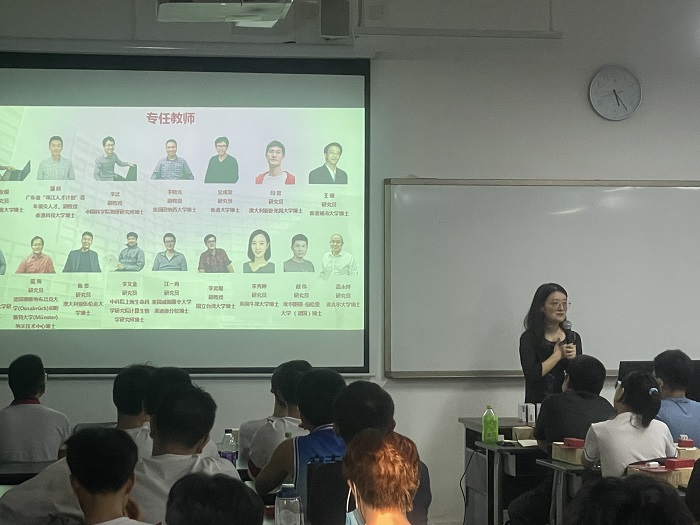 最后,韦阳副院长以“立足湾区 面向未来 ——做一个有责任有温度有能力的当代新青年”为题做学院情况介绍。韦阳副院长首先对全体2021级本科生新生的到来表示欢迎和祝贺,恭喜所有新生顺利入选高等研究院,进入本科阶段学习。随后,韦阳副院长围绕湾区的使命和未来,湾区的人才培养需求和现状,高等研究院的创新人才培养模式,高等研究院人才培养成果以及大学生活规划及几点期许五个方面,循序渐进的为新生们详细的介绍了高等研究院成立的背景、学院的发展历程、专业设置及建设、学院特色、师资力量、人才培养模式。最后对全体新生提出了三点期望:一是希望同学们明辨是非、知晓善恶,做一个有责任有担当的新好青年;二是希望同学们尽早确定目标和大学规划,合理规划大学学习,自信、独立,敢于尝试,并能积极面对逆境,不断磨砺个人意志;三是希望同学们时刻保持好奇心、坚持潜心求知治学,积极拓宽视野。韦阳副院长希望同学们以院训“持平守正、笃学不倦”为指引,不断摸索做人、做事、做学问的道理,注重个人分析问题能力、解决问题能力、时间管理能力、交流沟通能力、自我认知能力等能力提升,并祝福各位新生同学能在学院快乐学习、快乐生活,珍惜时光、不负韶华,立足湾区、面向未来,努力成为一名优秀的高研人!现场气氛热烈。
