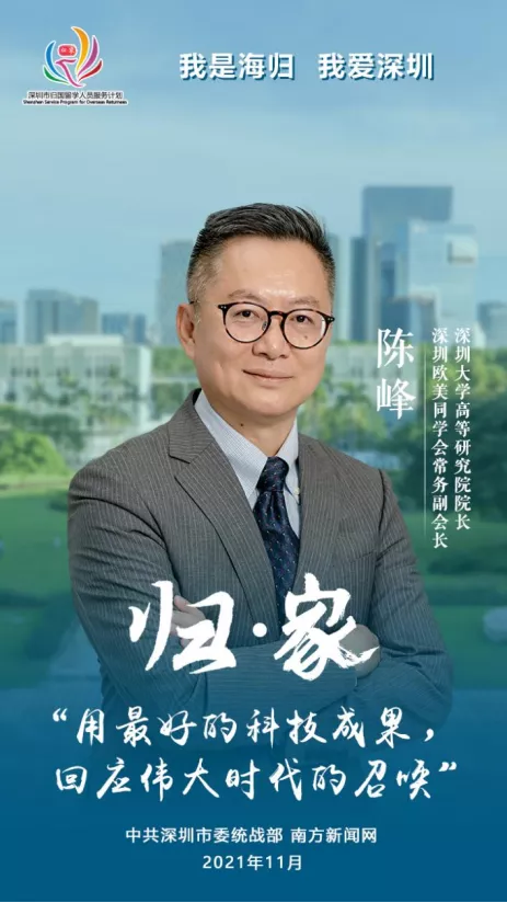 2018年,粤港澳大湾区规划呼之欲出,向各方人才发出“邀请函”。在陈峰看来,地处大湾区的深圳有更大的发展空间,更好的平台做研究,自己也能利用现有的学术积累助力深圳和大湾区建设。于是他应深圳大学校长李清泉邀请,来深筹建高等研究院,“深圳浓厚的科研氛围,是我们科研工作者孜孜以求的。”