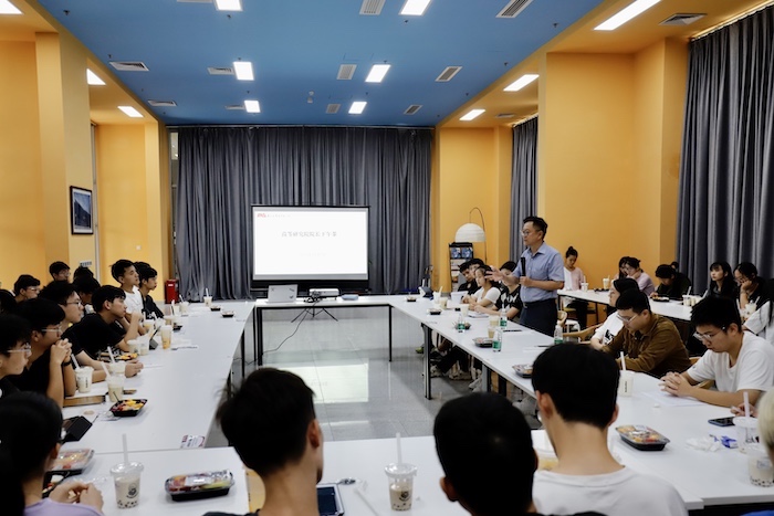 活动开始,陈峰院长首先对同学们的到来表示热烈的欢迎。他表示,学院采用下午茶的形式,力求为师生搭建起一个自由交流的平台,希望同学们能积极发言,学院也将及时解决同学们的困惑与需求。陈峰院长简要介绍了学院的办学理念,高等研究院注重培养在交叉学科背景下的国际化人才,当下大家应该做的,是不断探索自己真正喜欢的事物,找到进行科学研究的源动力,并持之以恒迎面挑战。他鼓励大家,人生是一段长跑,一时的得志与失意都无关紧要。在人生的起点,大家所需的是足够的信心、耐心与兴趣,通过自己的努力,定能在在科研之路上找到属于自己的方向。