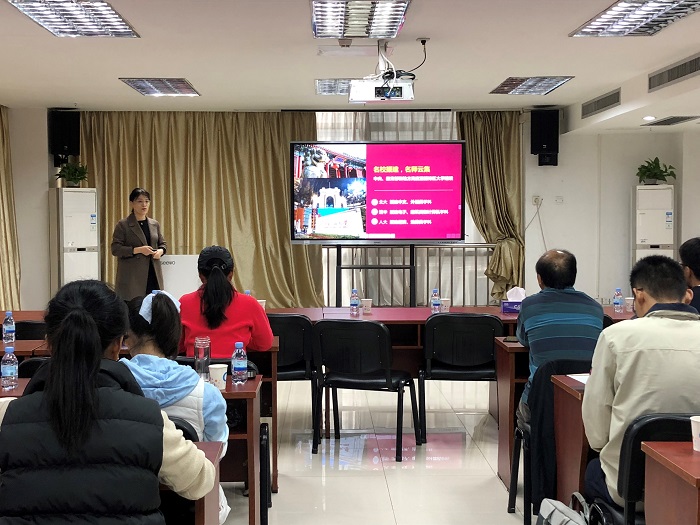 研讨会伊始,由招生办公室朱玲燕老师向参加本次研讨会的老师们表示热烈的欢迎。各位到校老师入座后,由朱玲燕老师向大家介绍深圳大学的培养特色、学科水平、校园文化、录取情况、毕业生发展方向等,通过数据比较、文字阐述、图片展示等方式,全方位地介绍了深大近年来的发展情况,展示了深大多元化的人才培养体系和富有前景的发展趋势,帮助高一老师们更加了解深大,关注深大。