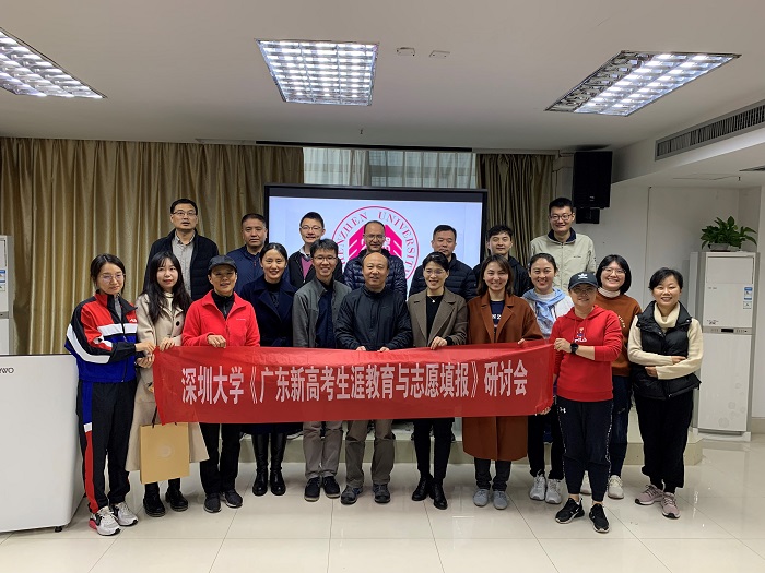 在高校招生宣传竞争日益激烈的当下,为进一步提升我校在深圳市内的影响力,同时加强与深圳市内高中一线教学老师之间的联系,12月23日上午,第十六期《广东新高考生涯教育与志愿填报研讨会》研讨会在育新学校军训基地开展,出席本次研讨会的人员有深圳大学招生办公室朱玲燕老师、深圳大学“名师进中学”特邀讲师李羚颖老师、深圳大学高等研究院陈阳老师、深圳实验学校高中部裴主任、朱主任和高一各班班主任老师。