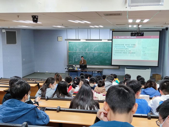 1月7日下午14:00,高等研究院在致理楼L4-203举办2021级新生军训动员大会,参加本次大会的有高等研究院副院长韦阳、辅导员陈海亮及全体2021级新生。