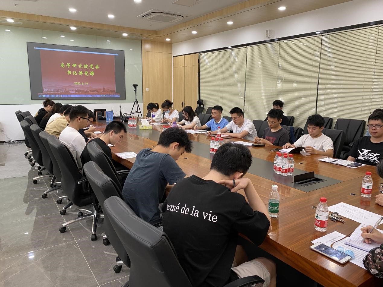 2022年5月19日,高等研究院党委为切实加强2022届毕业生党员教育、管理和服务有关工作,进一步增强毕业生党员党性修养,帮助毕业生党员办理好党组织关系转接,学院党委在致知楼706会议室开展毕业生党员最后一堂党课暨组织关系转接工作实务培训。学院党委书记刘小义同志,党委副书记兼副院长韦阳同志,党务组织员王滢同志及毕业生党员参加会议。