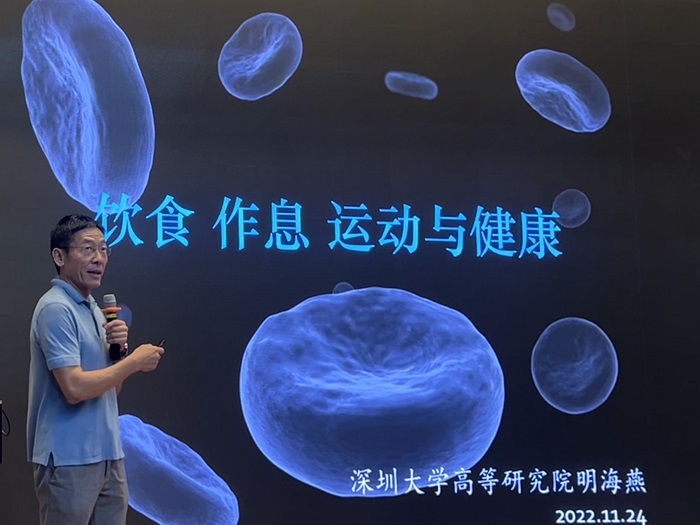 随后,明海燕教授介绍了作息的基本原则,提倡早睡早起、适量午睡、不熬夜、不睡懒觉。同时,明海燕教授结合自己的经验,为同学们分享了运动的好处。他指出,运动能改善心血管健康,改善心肺功能,也能缓解压力,提高注意力,改善睡眠,希望同学们能加强体育锻炼,选择适合自己运动方式和运动量。