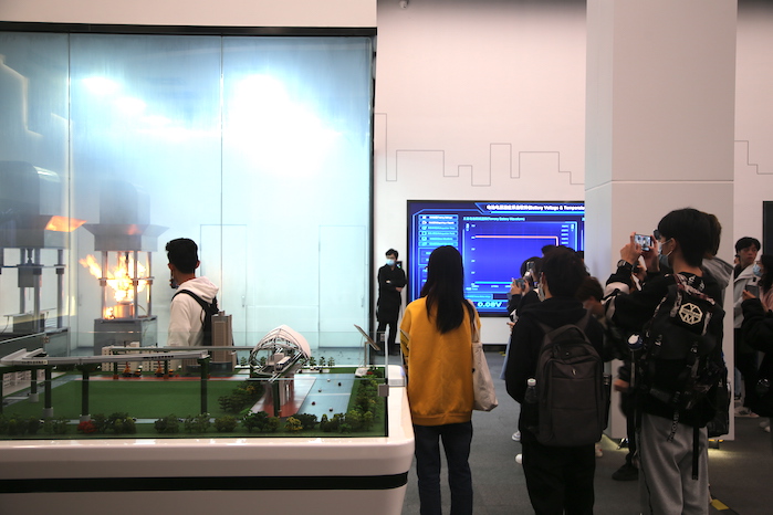 在讲解员的带领下,同学们先后了解了比亚迪的发展历程、产业布局、DM技术平台以及代表性产品等,对比亚迪“技术为王、创新为本”的发展理念有了更深的认识。在针刺实验室中,同学们现场观看了针刺三元锂电池和刀片电池的实验,三元锂电池被针刺后的瞬间爆燃和刀片电池被针刺后的平静给同学们留下了深刻的印象。随后,同学们来到了弗迪电池SVB工厂,近距离地参观了全自动的电池生产线,见证了比亚迪磷酸铁锂电池的制作工艺。