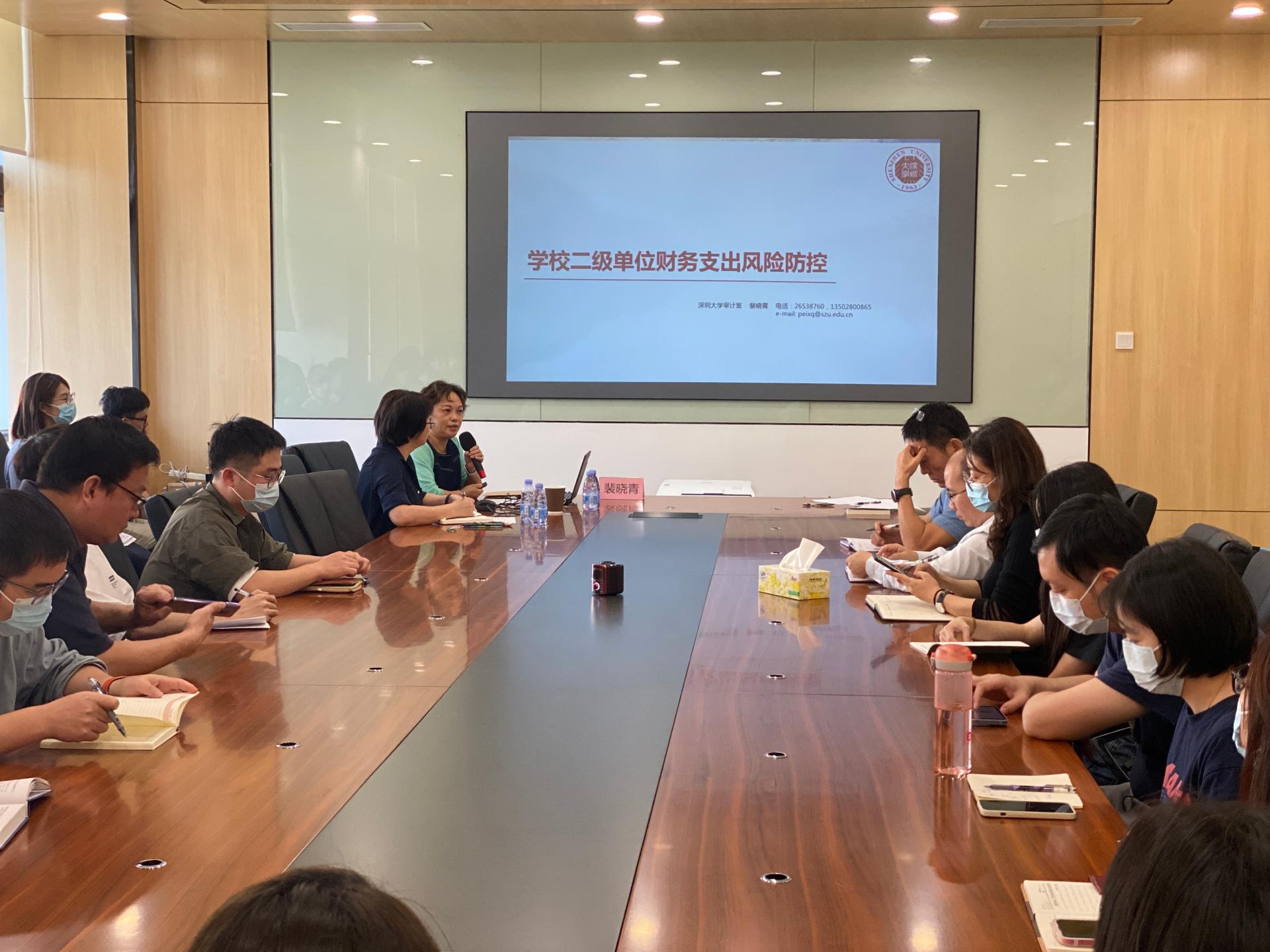 为积极响应《深圳大学2022年纪律教育学习月活动方案》 的通知,高等研究院2022年10月21日下午3:00,特邀深圳大 学审计室裴晓青主任,以“学校二级单位财务支出风险防控” 为主题,开展专题讲座。此次讲座由高等研究院党委书记邱妙芳同志主持,学院其他院领导、管理人员、技术人员及特聘教授、全职授课教师、专职授课教师参加。