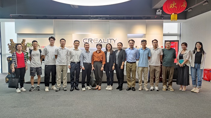 师生一行首先来到深圳市创想三维科技股份有限公司。总经理敖丹军带领师生到企业展厅进行参观,并对公司的发展历程、主要产品作简要介绍。深圳市创想三维科技股份有限公司是全球3D打印机领导品牌,国家级“专精特新”小巨人企业,国家高新技术企业,专注于3D打印机的研发和生产,产品覆盖“FDM和光固化”,拥有533项3D打印机授权专利。目前自主研发制造的熔融沉积和光固化3D打印机在国内处于领先水平。