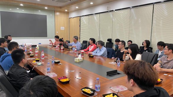 随后,董蜀湘教授引领各位师生前往交流座谈会现场。会上,董蜀湘教授首先隆重介绍了王晓慧教授、洪家旺教授、郭丽敏副教授,其余师生依次进行自我介绍。然后,常江磊博士代表董蜀湘课题组对组内研究领域、最新技术、前沿热点和成果进展进行深入介绍。最后,相同研究兴趣的师生之间展开了自由交流与积极互动,并就未来拟合作的研究方向进行深入讨论。