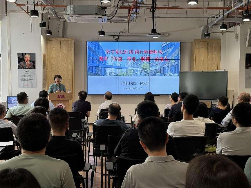邱妙芳书记以“坚守党纪红线,践行师德师风,筑牢‘传道、授业、解惑’的基石”为题,为全院教职工上了一堂党纪学习教育、合规建设和廉政(师德师风)党课。希望大家深刻认识党纪学习的重要意义。通过深刻剖析违纪典型案例,提醒在学纪、知纪、明纪、守纪中要做到知行合一,增强纪律意识、规矩意识。她通过带领大家一起学习《关于建立健全高校师德建设长效机制的意见》、《新时代高校教师职业行为十项准则》等相关规章制度,让大家进一步明确高校教师师德禁行“红七条”、高校教师职业行为准则、高校教师师德失范行为处理办法等。希望全院教职工做到以德立身、以德立学、以德施教,更好地担起学生健康成长指导者和引路人的责任。