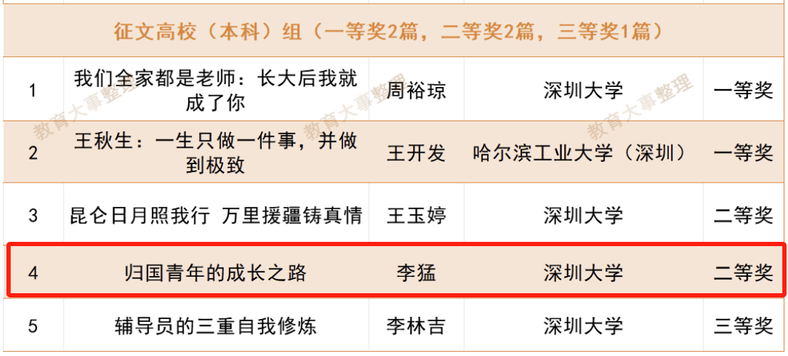 近日,广东省教育厅公布了第十三届师德主题征文及微视频征集活动评选结果,深圳大学荣获优秀组织奖,高等研究院李猛教授的《归国青年的成长之路》荣获高校(本科)征文组二等奖。