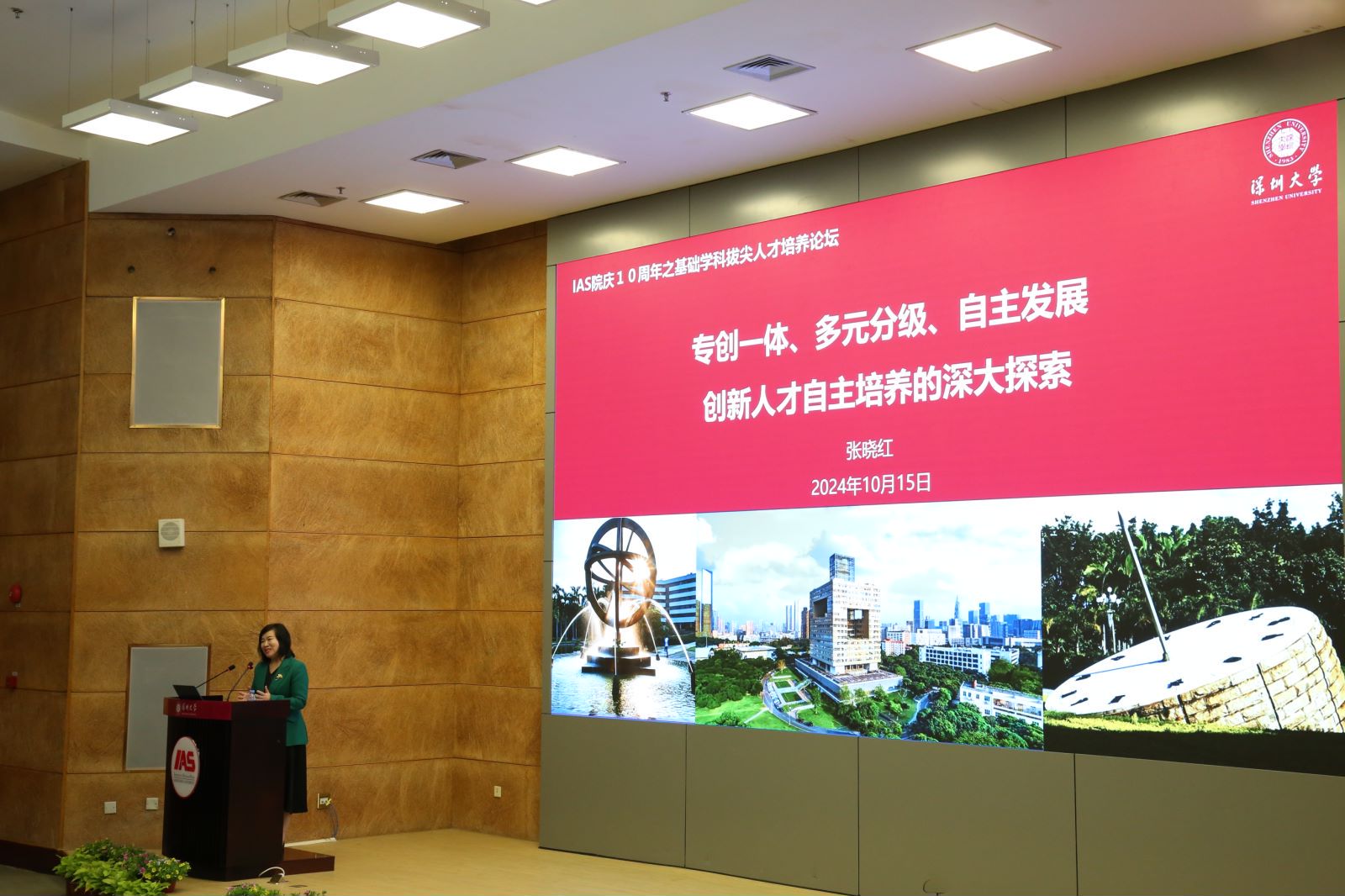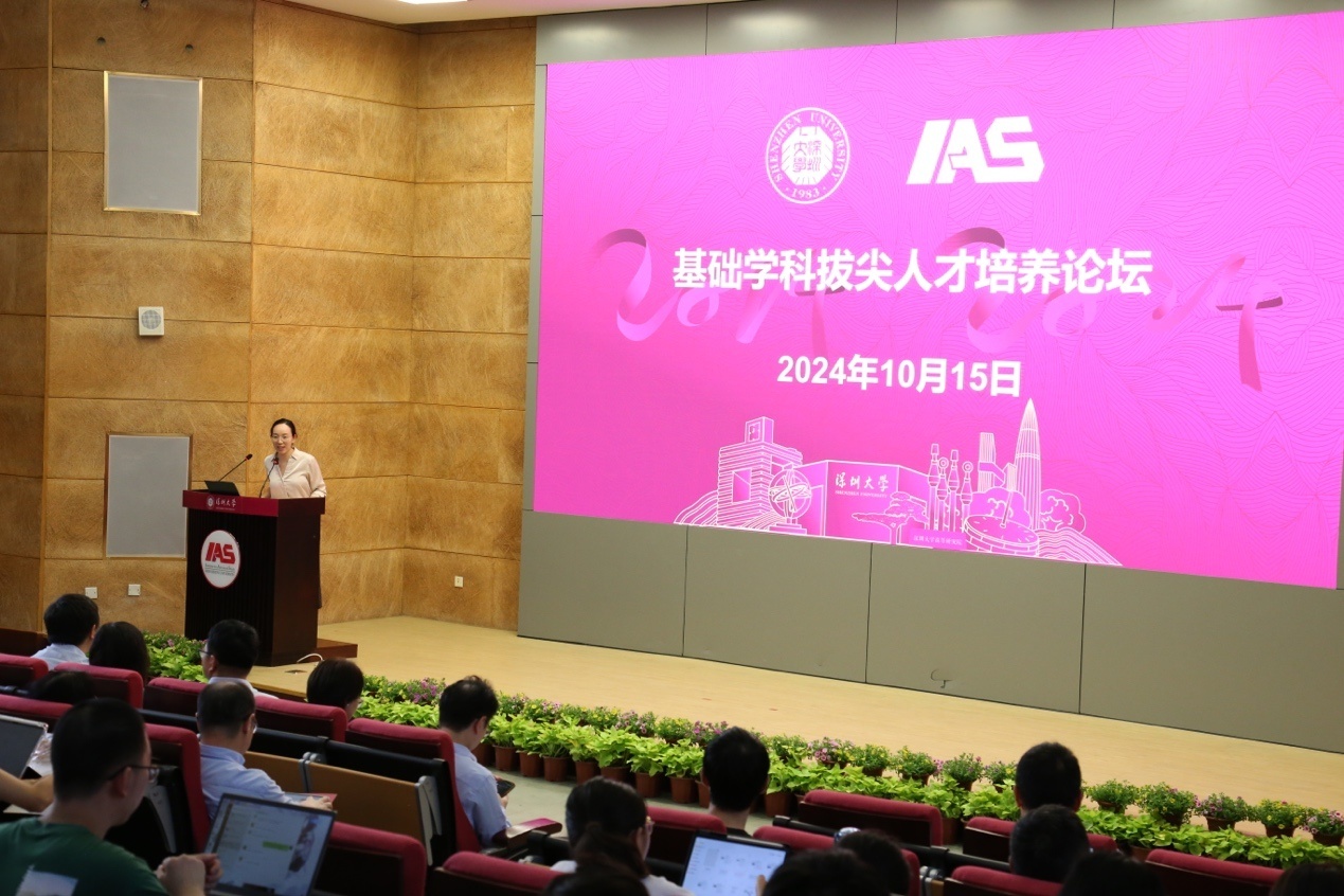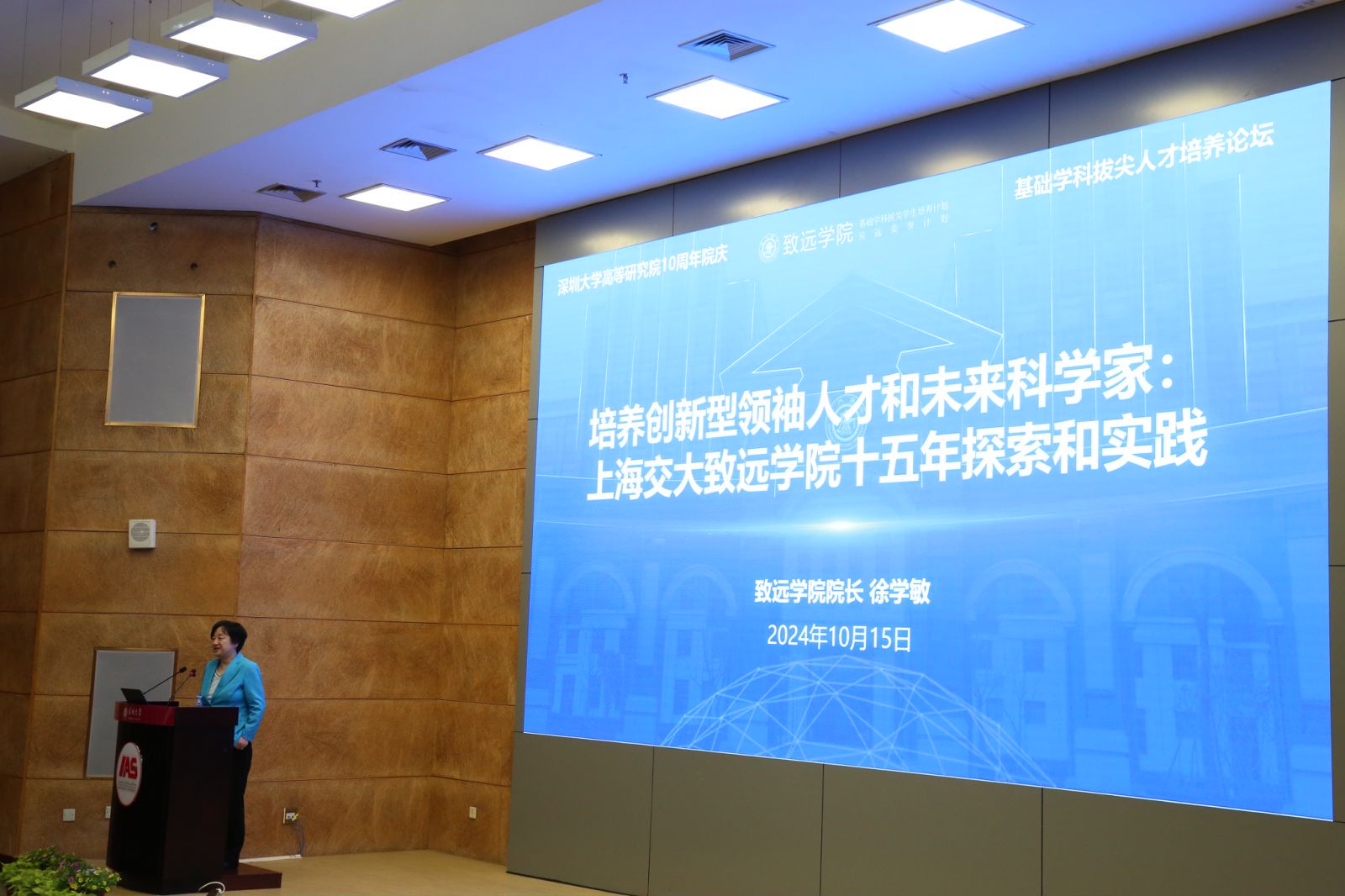 10月15日上午,基础学科拔尖人才培养论坛在深圳大学致知楼报告厅召开。论坛邀请南京大学副校长陆现彩教授,上海交通大学原副校长、致远学院院长徐学敏教授,北京大学前沿交叉学科研究院副院长李默教授,深圳大学副校长张晓红教授,上海交通大学致远学院副院长夏伟梁教授等学界嘉宾参与。高等研究院主要领导、校友代表、师生代表等参加论坛。高等研究院副院长李秀婷主持会议。