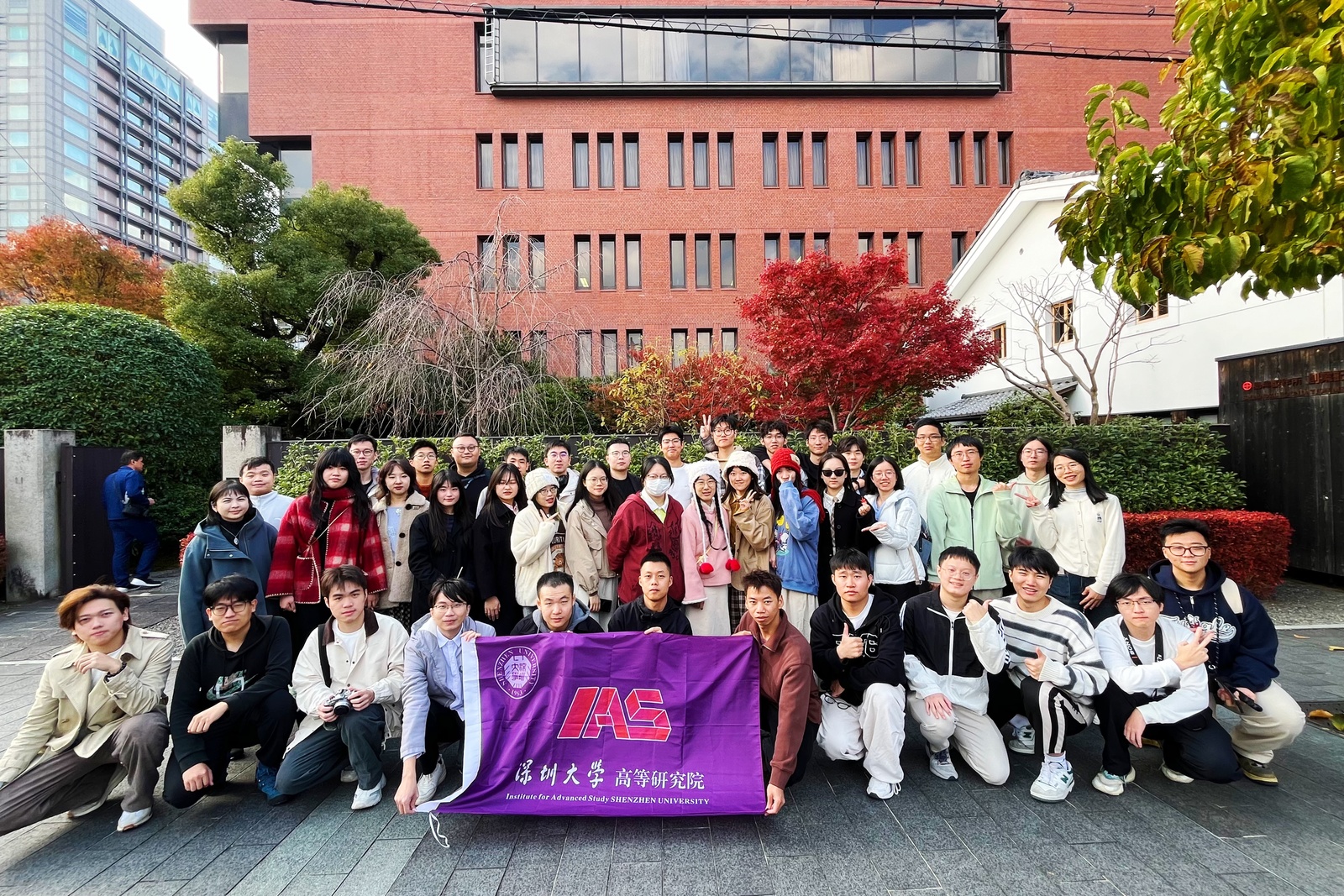 为拓宽学生视野,培养国际化高素质人才,促进学院学术发展及国际交流,深圳大学国际交流合作部及高等研究院共同组织了日本京都大学访学项目。经学院选拔,39名高等研究院优秀学生在辅导员彭枚芳及科研秘书刘俊芳两位老师的带领下,于12月2日至8日赴日本进行了为期一周的学习参访和体验交流。此次访学活动内容丰富,形式多样,包含主题讲座、企业见习及文化交流等方面,为学生拓展知识,开阔视野提供了宝贵机会。