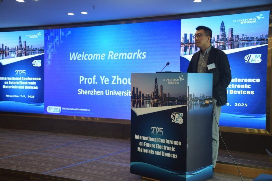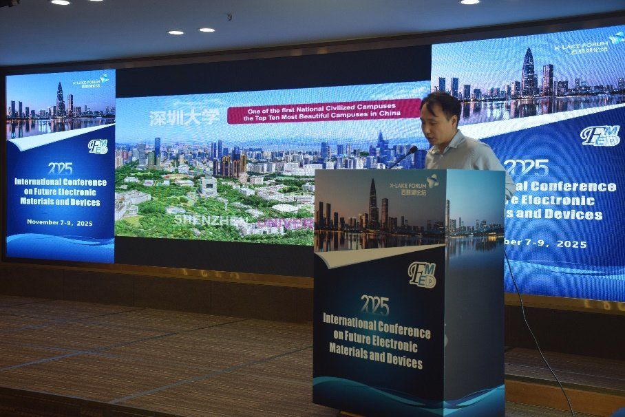为推动高水平大学建设,加强国际学术交流与合作,2025年11月7日至9日,由深圳大学主办、深圳大学高等研究院承办的2025未来电子材料与器件国际学术会议(2025 International Conference on Future Electronic Materials and Devices)在深圳大学粤海校区隆重召开,本次会议也是西丽湖论坛11月的第一场专业论坛。会议以“新材料驱动新器件”为核心议题,聚焦电子功能材料在前沿器件构建中的创新应用,旨在打通从基础材料研究到应用器件开发的创新链条。