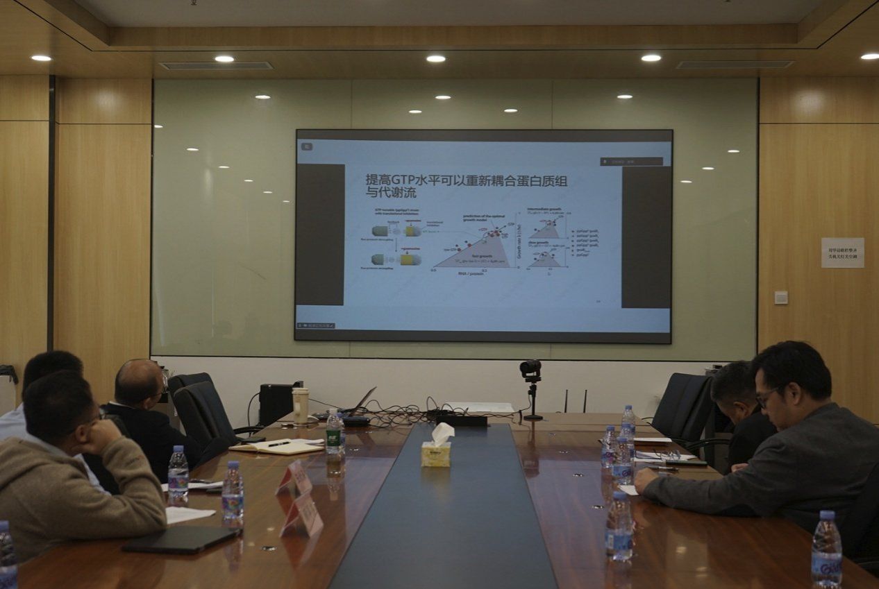 首位报告人杨津博士以《细菌中全局代谢流与蛋白质组分区的解耦》为题,深入剖析了微生物如何通过GTP信号通路实现氨基酸合成与核糖体资源的动态平衡。其研究揭示了全局代谢调控中的“解耦”现象,不仅深化了对细菌生长适应性的理解,也为合成生物学中底盘细胞的理性设计提供了理论支撑。