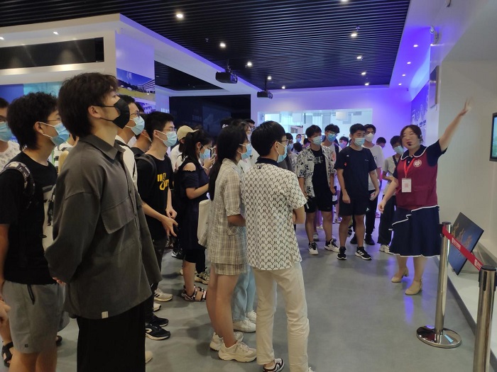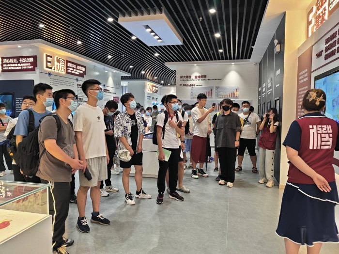 在讲解员的带领下,同学们穿过纵横交错的时间轴,回顾深圳大学蓬勃的创办发展历程。通过“人才培养”、“科学研究”、“学科建设”、“师资队伍”、“党的建设”、“校园文化”、“国际合作”、“办学条件”、“校友风采”、“发展展望”十个主题展区,同学们深刻地感受到深圳大学的办学精神和卓著的办学成果,由衷为自己此刻身为一位深大人而自豪。