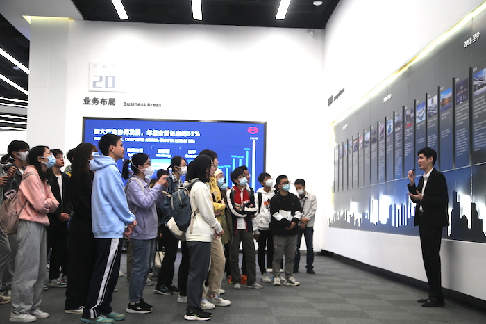 比亚迪深圳地区人力资源部经理顾洪涛对我院师生的到来表示热烈欢迎,并对参访流程进行了简要介绍。同学们首先来到比亚迪深圳全球总部的利宾楼展厅,在展厅一层观看了比亚迪的宣传片。比亚迪是一家致力于“用技术创新,满足人们对美好生活的向往”的高新技术企业,致力于打造具有国际竞争力的技术创新平台,业务布局涵盖电子、汽车、新能源和轨道交通等领域。