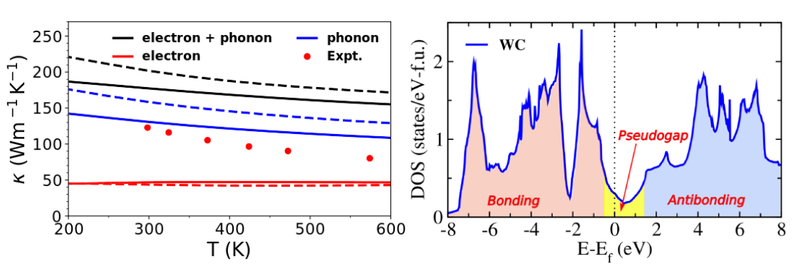 (图:左图是WC的电子和声子热导率,右图是电子态密度)