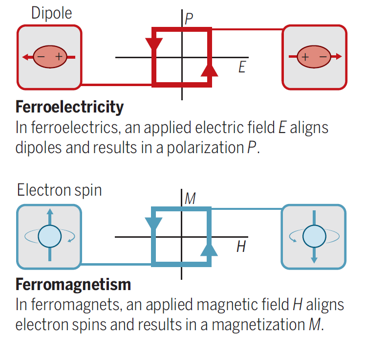 周晔研究员的论文中提到:在过去的二十年里,科学家们一直在努力地寻找多铁性材料。由于其铁电性与磁性的共存与耦合,以及在新型多功能器件中的应用潜力,多铁材料引起了学界广泛的关注。磁电耦合描述了在相同材料中磁化对电场和极化对磁场的多铁性响应。尤其是,当结合快速的电写磁读时,多铁材料可以用于非易失性的、低功耗和高密度的存储器件。Long等人发现了一种具有高磁电耦合的分子磁电材料,他们的研究提供了具有磁致伸缩现象的顺磁铁电镧系配合物中存在强磁电耦合的证据,这种分子材料的性质表明它可能可以和无机磁电材料竞争。磁电材料在电场或磁场的作用下会极化,因此对数据存储应用很有吸引力。在他们发现的分子磁电材料中,外加磁场使材料产生应变,从而改变其电学性质。此外,分子材料所需的磁场比其他磁电材料低得多,彰显了分子磁电材料在器件中的巨大应用潜力。