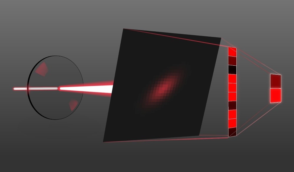 激光从激光器中出射时,光束的位置和角度均会随机的偏离激光器的轴线,对这两种偏差的实时测量,是激光指向控制领域的重要问题。在传统的激光指向控制系统中,光束的位置和角度偏移量需要通过两套光路分别测量。这一复杂的测量过程使得准直系统相对复杂, 影响其可靠性和测量精度。课题组在研究中,对测量系统进行了重新设计,开创性的采用了倾斜探测器以及区别于传统测量中长焦距透镜的小焦距透镜,并结合人工神经网络算法,实现了在单一光路中通过单次测量同时获取光束的位置和角度偏移量的方法。相比于传统方法,该方法不仅可以极大简化系统设计的复杂性,还可通过优化网络和增大数据量等方法进一步提高测量精度,从而为全面提高系统可靠性和测量精度提供了一种全新方案。