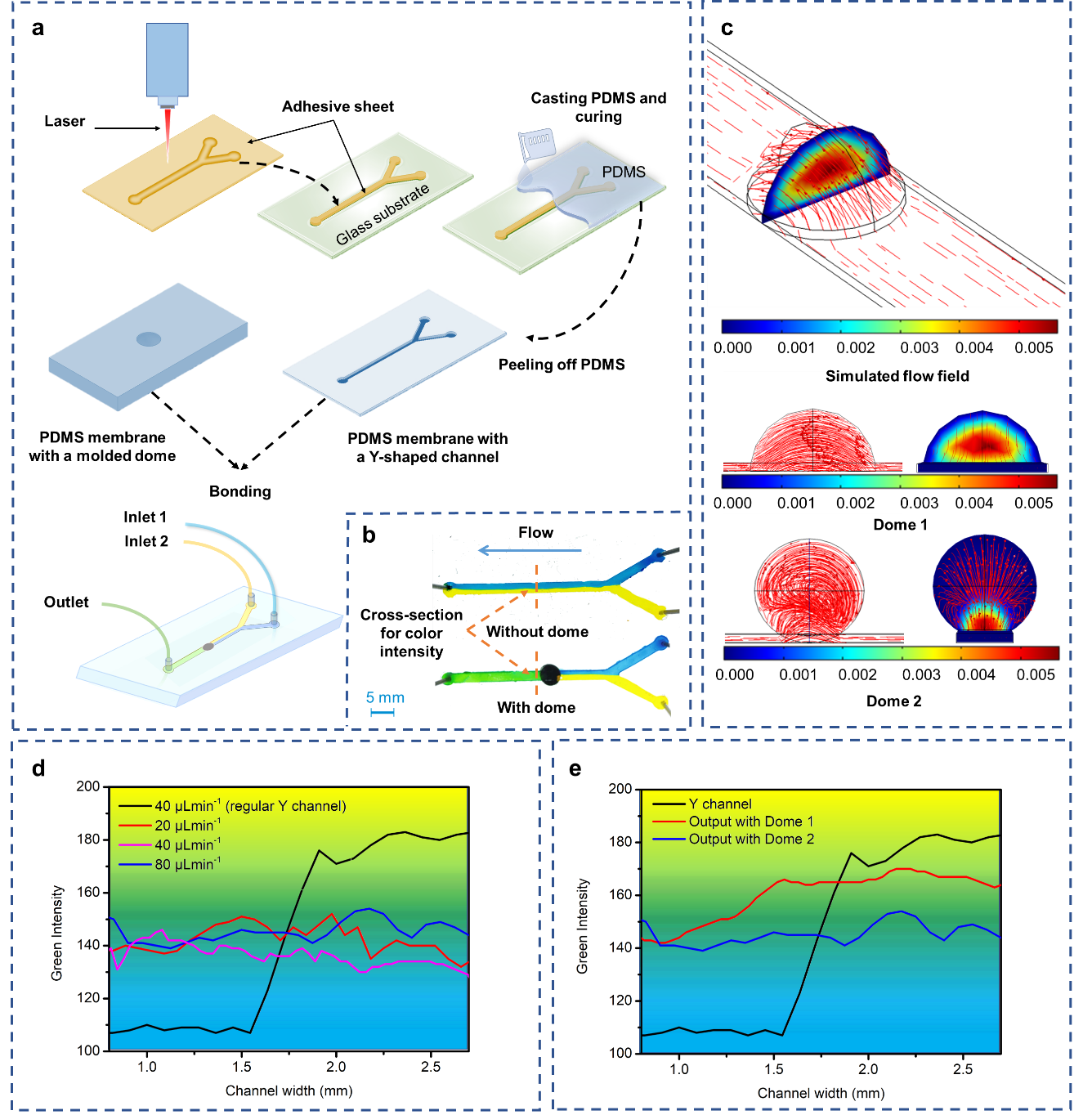 此外,该方法还被应用于制备常规Y型微流控混合器。圆顶结构内部产生的涡流,显著增强了液体的混合性能。另外,作者还提出了利用该方法制备微透镜阵列的可能性。综上,该方法为制备复杂微流体结构和智能可穿戴传感设备提供了新的思路。文章链接:https://doi.org/10.1002/admi.202100038,DOI: 10.1002/admi.202100038