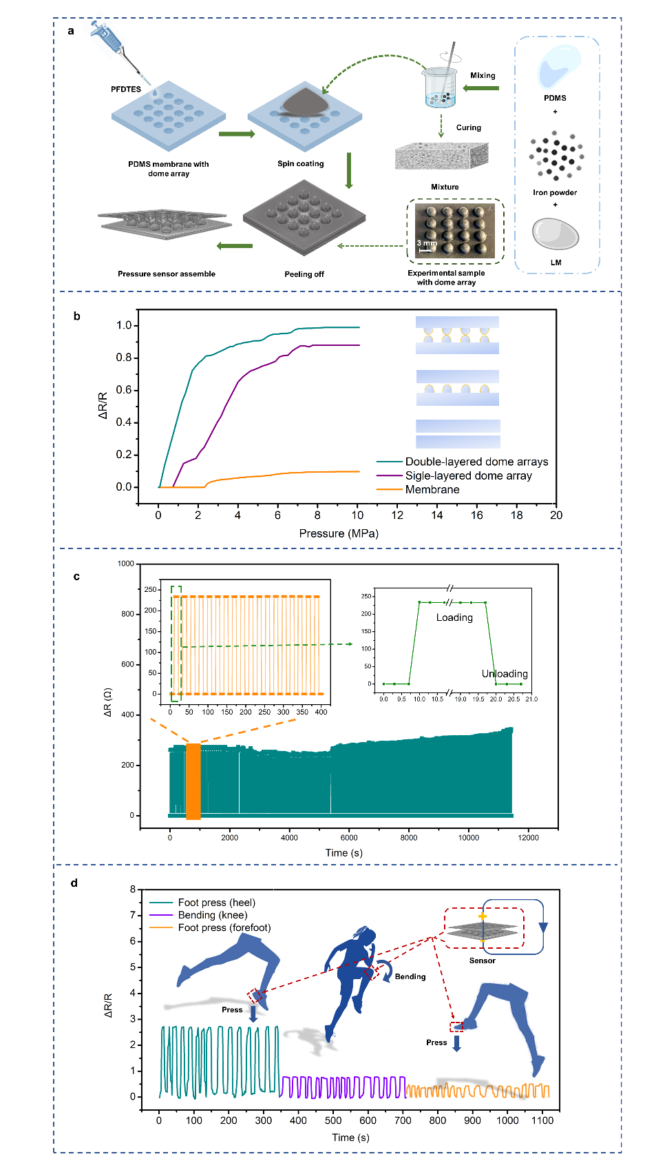 图2. 基于液态金属导电复合材料的柔性可拉伸压力传感器