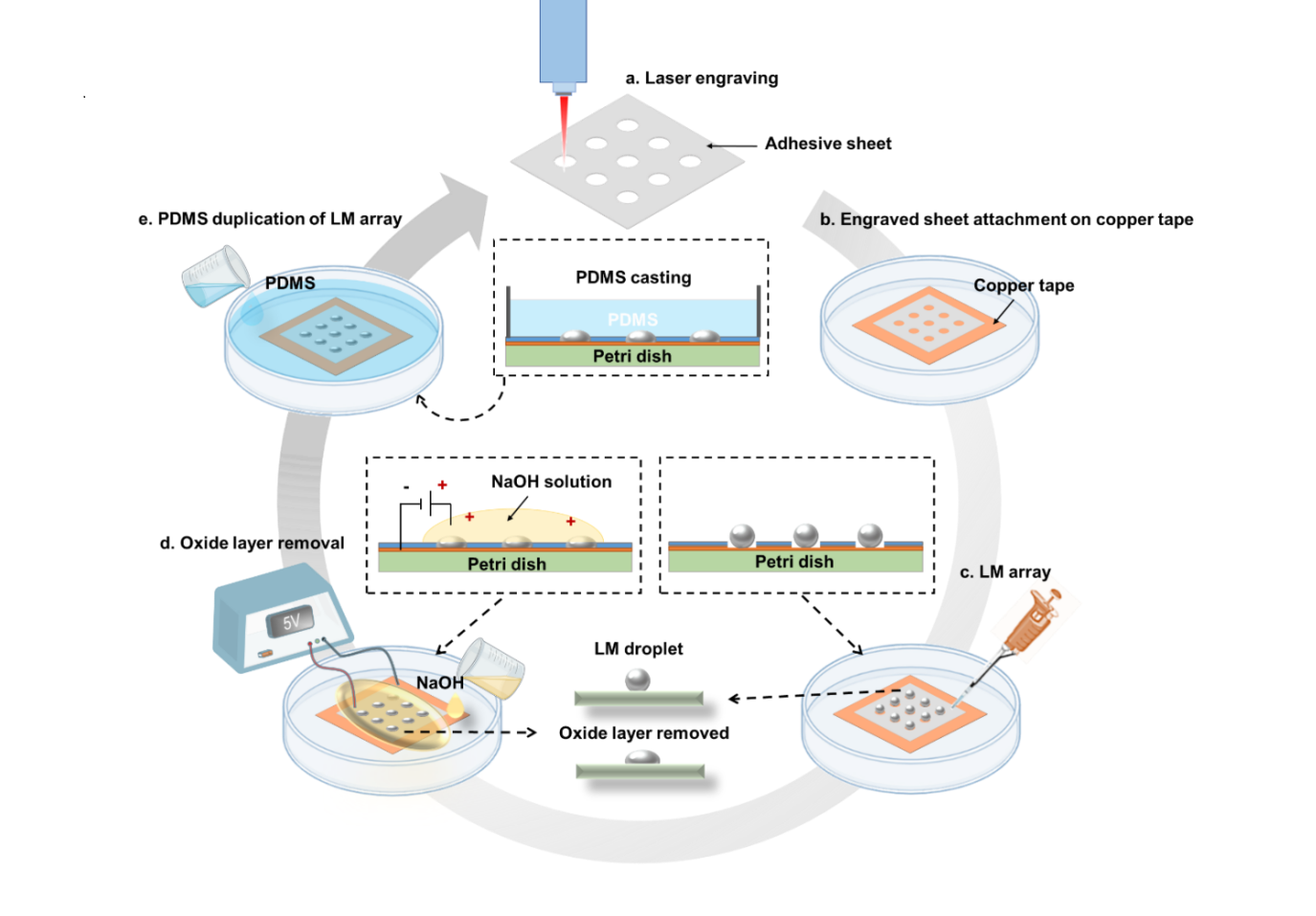图1.液态金属阵列制造过程的示意图。