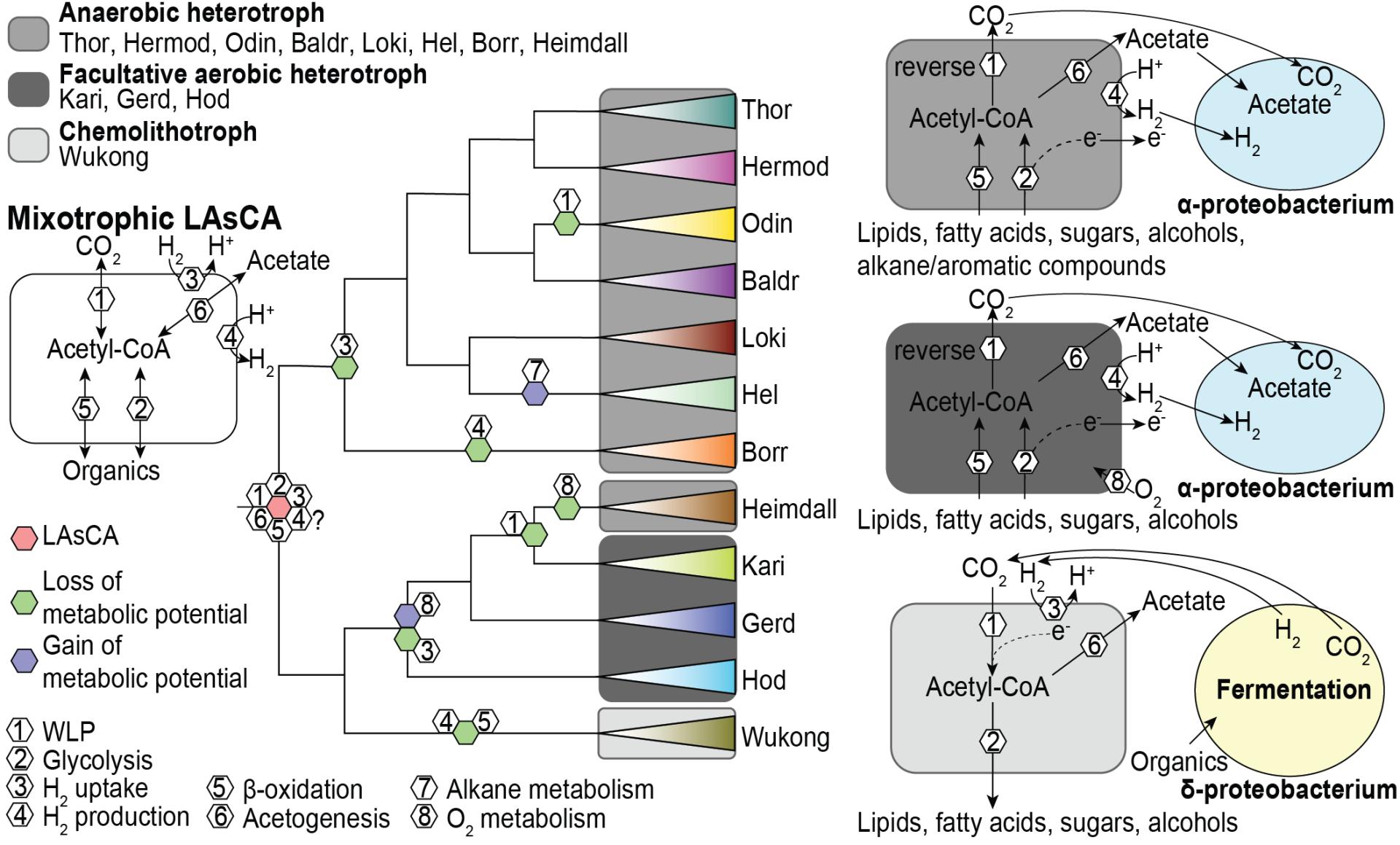 图三: 阿斯加德古菌关键代谢过程的重构与演化