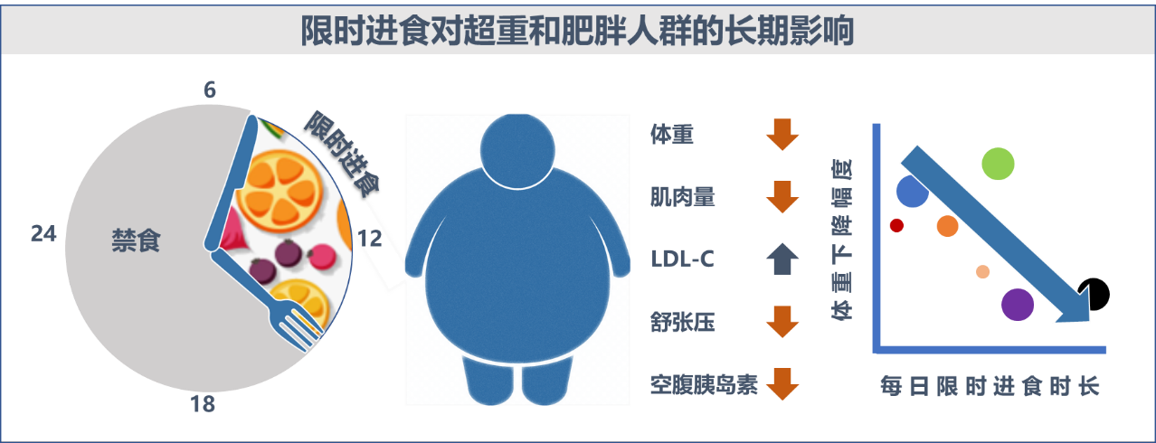 在本论文中,作者们首次提供了关于限时进食对超重和肥胖人群的长期影响的证据分析;重点关注了代谢指标的变化,包括体重、体成分(体脂、肌肉量、内脏脂肪)和心血管代谢指标(血压、血脂、血糖、胰岛素、心率)等;讨论了目前限时进食临床研究试验设计的不足,并对未来限时进食临床应用提出了建设性的意见。
