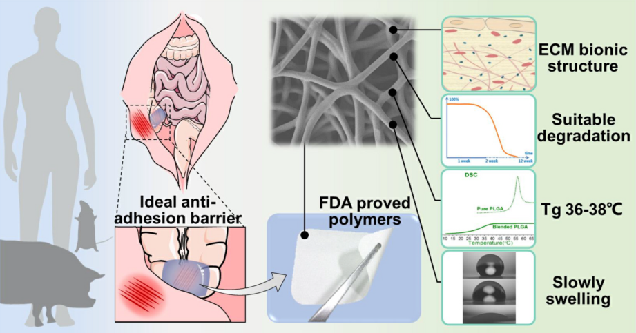 近日,深圳大学高等研究院许杉杉研究员团队与国家纳米科学中心刘颖研究员团队合作制备了一种仿生术后仿粘连纤维膜,相关结果以题为“Surface structure change properties: Auto-soft bionic fibrous membrane in reducing postoperative adhesion” 发表在《Bioactive Materials》(IF:14.593,JCR和中科院一区Top),本文的第一单位为深圳大学高等研究院。