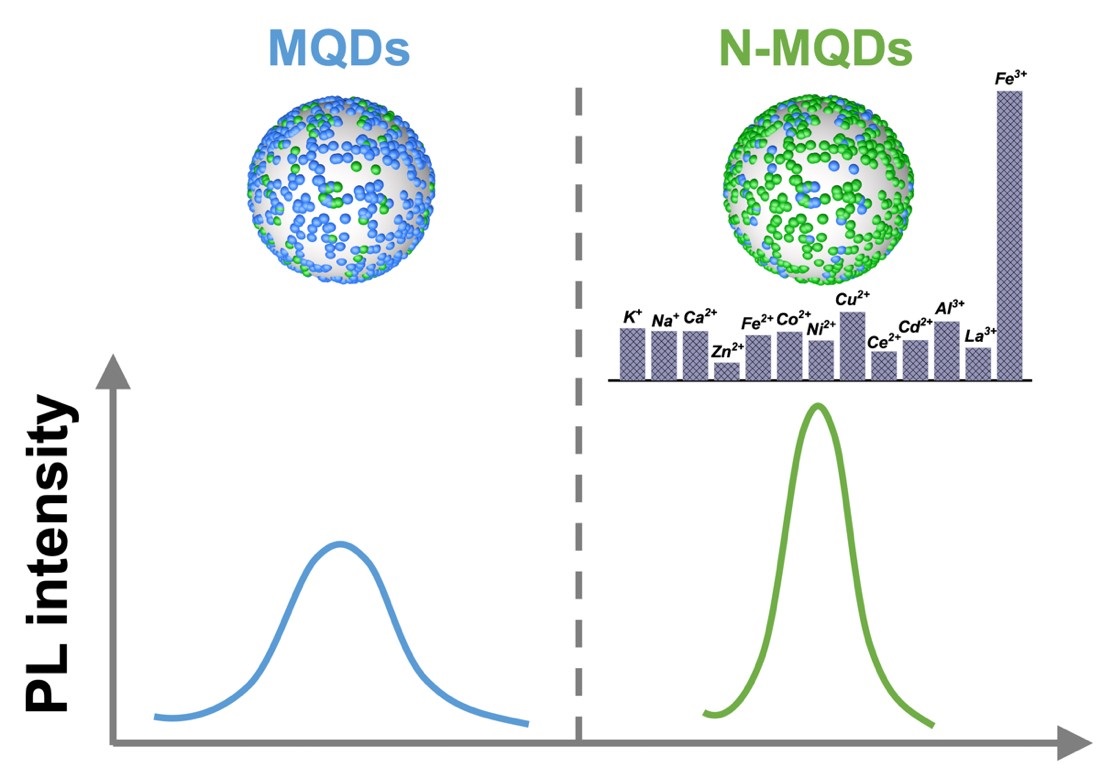 图1:富含氨基的Ti3C2TX量子点在Fe3+离子的检测中表现优异