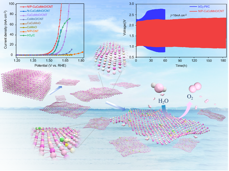 2022年9月26日,深圳大学高等研究院蔡兴科研究员课题组在期刊《Applied Catalysis B: Environmental》(影响因子:24.319,中科院一区TOP)上发表了一篇题为“ Improved oxygen evolution reaction performance in Co0.4Mn0.6O2 nanosheets through Triple-doping (Cu, P, N) strategy and its application to Zn-air battery”的研究论文。该成果第一作者是深圳大学高等研究院2020级硕士生李莹,合作者包括清华大学Shamraiz Hussain Talib博士等,希腊塞萨利大学Panagiotis Tsiakaras教授(共同通讯作者),蔡兴科研究员是该论文通讯作者,深圳大学为第一完成单位。
