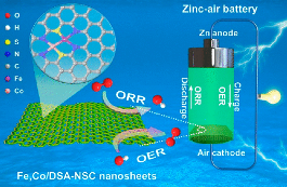 可充电锌-空气离子电池具有安全、零污染、高能量、大功率、低成本及材料可再生等优点,其中空气电极中的氧气电催化剂是技术的关键。研究表明,碳材料负载的单原子催化剂对于氧还原(ORR)与氧析出反应(OER)具有较好性能表现。近日,深圳大学赵伟课题组报道了一种利用原子-界面调控的方法,合成了氮/硫掺杂的多孔碳担载的铁/钴双位点单原子催化剂,用作空气电极材料实现了优异的锌-空气电池循环充放电性能。通过多种实验表征技术并结合理论计算,确定了非对称配位的Fe-(N2S)和Co-(N2S)结构提高了电荷转移效率,降低了反应能垒,提升了ORR和OER反应动力学性能,具体情况:ORR的半波电位为879mV,OER的过电位为210mV(j=10mA/cm3)。该研究通过调控单原子活性位点的微环境并同时掺杂第二种金属单原子形成协同双催化效应,达到了优化ORR和OER反应并提升锌-空气离子电池性能的目的,为单原子双催化中心的协同作用相关研究提供了借鉴。