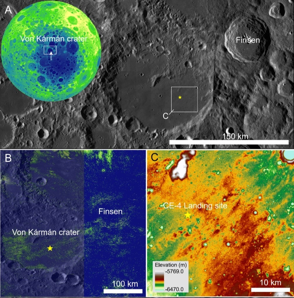 图1. 月球背面嫦娥四号着陆区位置及其周边地形