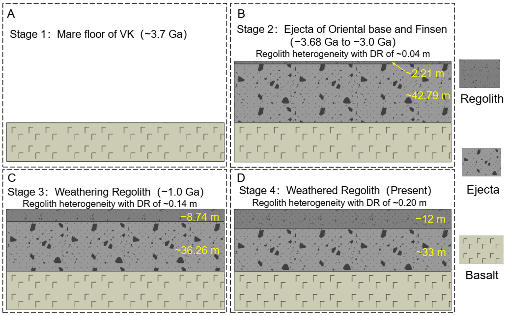 图2. 嫦娥四号月壤内部非均匀性演化模型