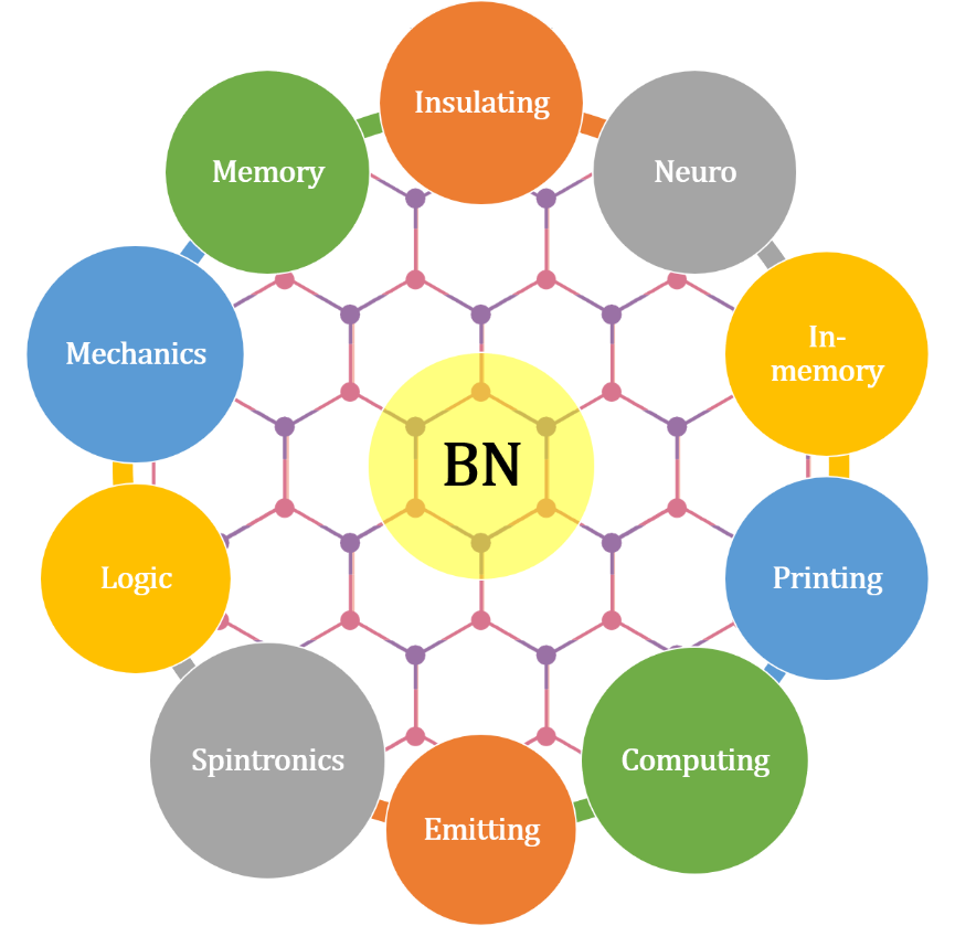 二维材料的合成路线和制备技术的快速发展推动了微纳电子存储器件的快速发展,并在半导体研究领域取得了突破性进展。六方氮化硼(h-BN)具有优异的化学、机械和光学性能,已被证明有潜力克服缩放限制,以取代在二端或三端器件中使用的厚电介质。使用原子级厚度的h-BN或h-BN范德华异质结构有望提高存储器件的可靠性、容量和功能性。本文综述了具有易失性和非易失性的h-BN存储器的最新进展,将存储器扩展到功能应用,并讨论了基于h-BN的存储器和逻辑电路的进一步发展挑战。