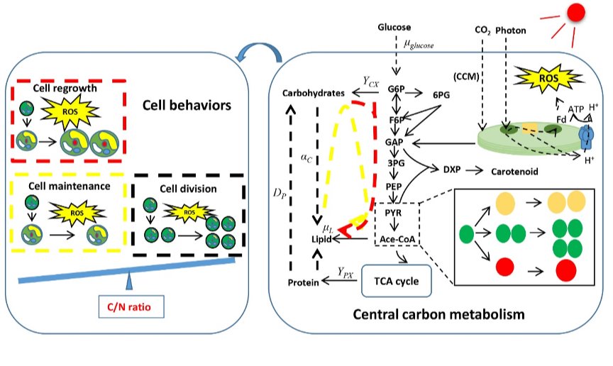 (图1:微藻Chromochloris zofingiensis中心碳代谢与细胞行为关系示意图)