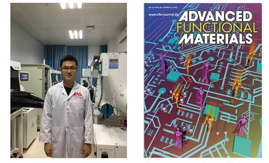 左图:任意同学在实验室 右图:成果当选AFM封面文章