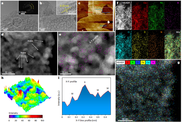 图1. Ir/(Co,Fe)-OH/MI催化剂的结构表征。