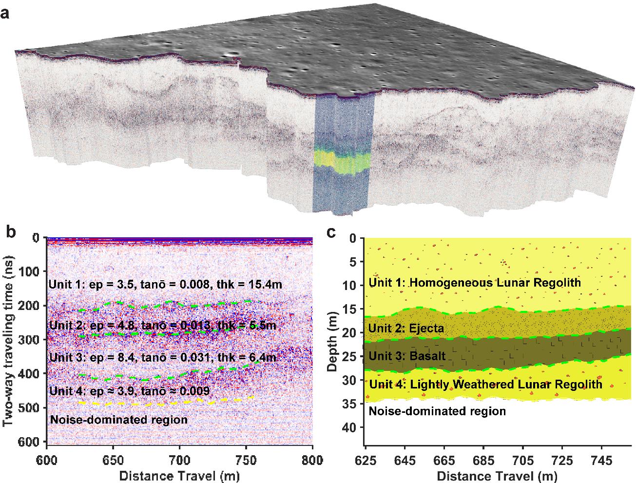 图1.玉兔二号探月雷达解析的月球浅层四元结构示意图(图片来源:研究团队供图)
