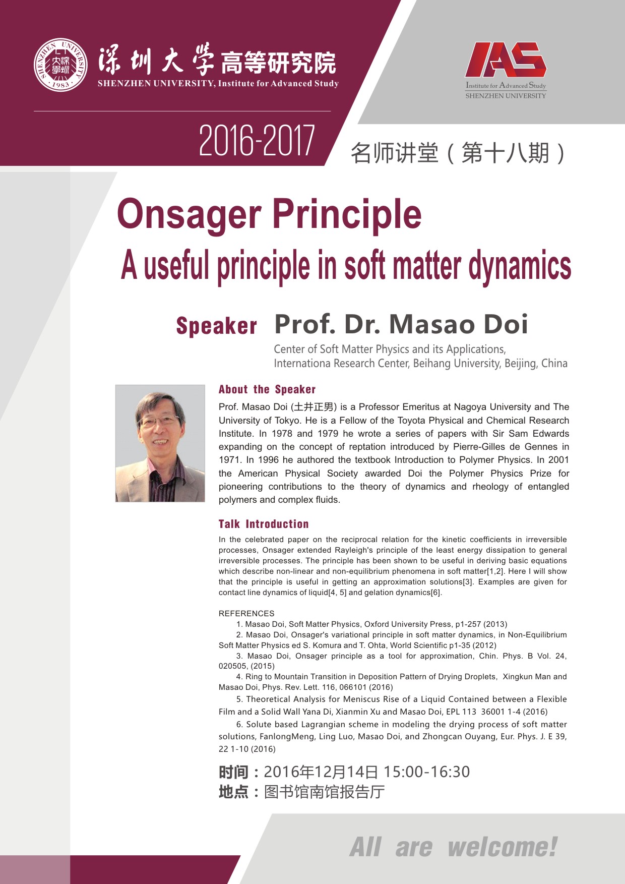 3. Masao Doi, Onsager principle as a tool forapproximation, Chin. Phys. B Vol. 24, 020505, (2015)