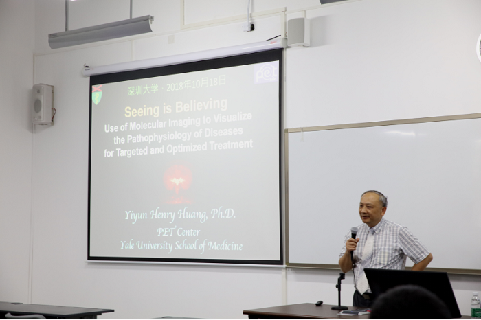 2018年10月18日下午2:30,高等研究院“知名学者讲学计划”第二期在理工楼L1-707举行。耶鲁大学医学院放射和医学影像学教授、医学院PET中心联合主任兼化学部主任黄艺耘教授做了一场精彩的学术报告。高等研究院2018级新生及部分教师聆听了此次讲座。