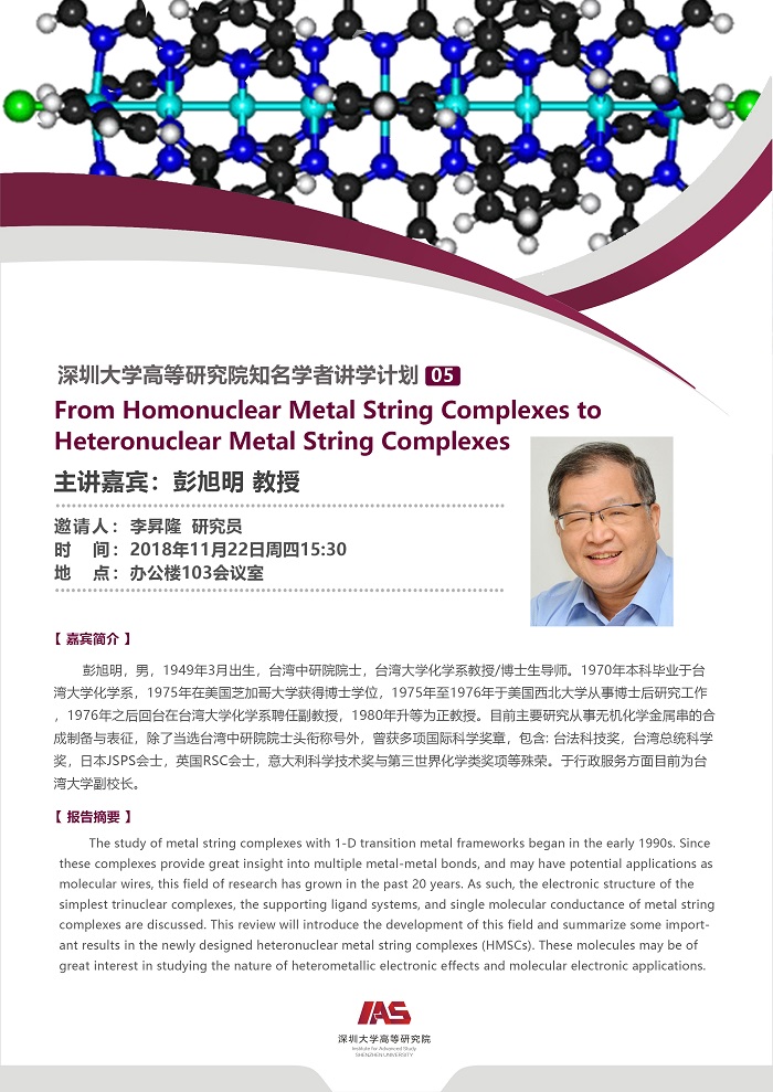 报告题目: From Homonuclear Metal String Complexes to Heteronuclear Metal String Complexes