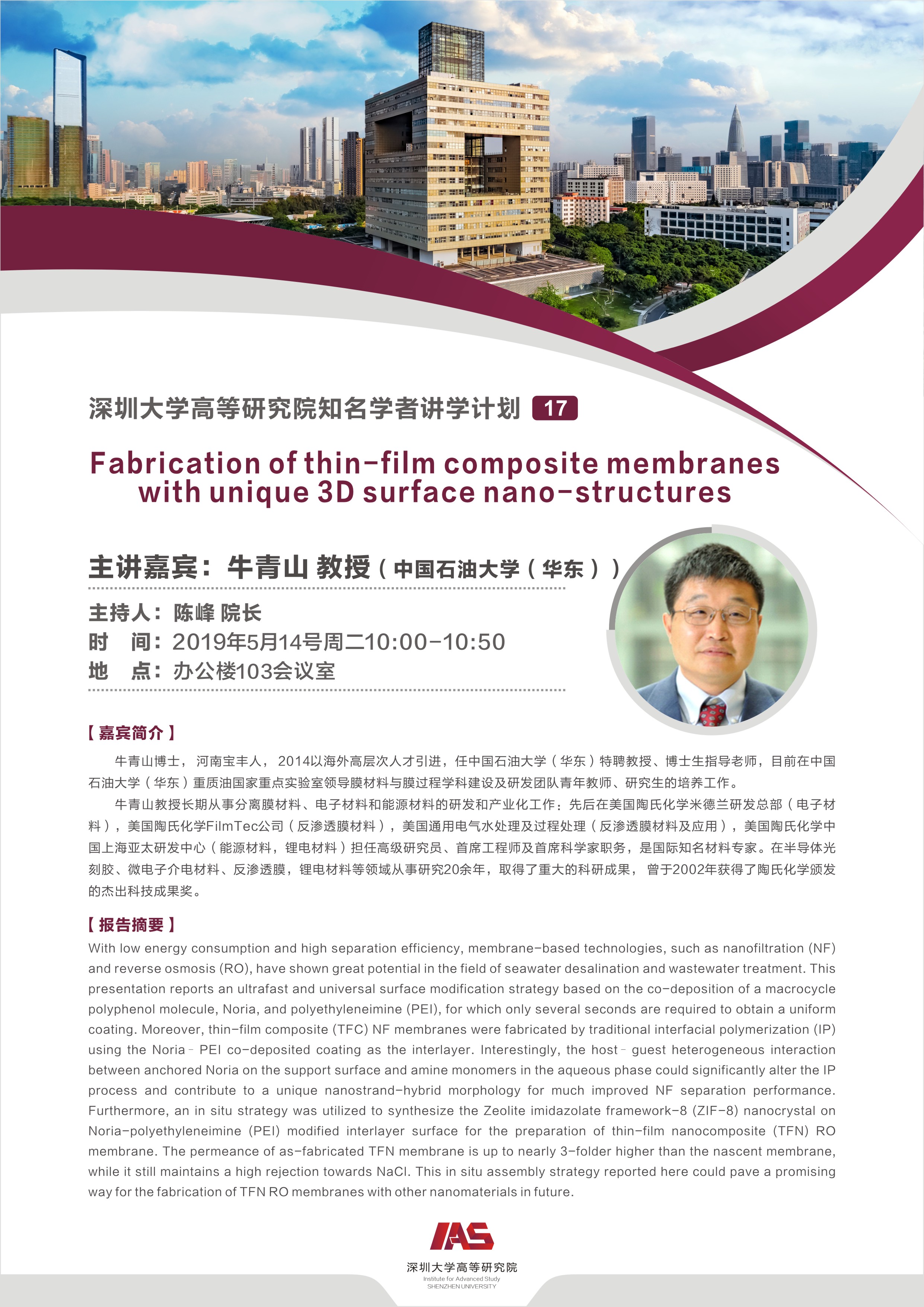 报告题目:Fabricationof thin-film composite membranes with unique 3D surface nano-structures
