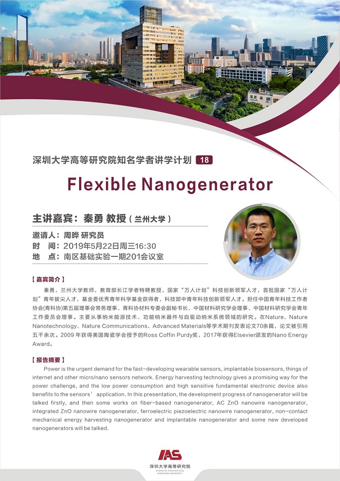 秦勇,兰州大学教师,教育部**学者特聘教授,基金委优秀青年科学基金获得者,科技部中青年科技创新领军人才。担任中国青年科技工作者协会(青科协)第五届理事会常务理事、青科协材料专委会副秘书长、中国材料研究学会理事、中国材料研究学会青年工作委员会理事。主要从事纳米能源技术、功能纳米器件与自驱动纳米系统领域的研究。在Nature、Nature Nanotechnology、Nature Communications、Advanced Materials等学术期刊发表论文70余篇,论文被引用五千余次。2009 年获得美国陶瓷学会授予的Ross Coffin Purdy奖,2017年获得Elsevier颁发的Nano Energy Award。