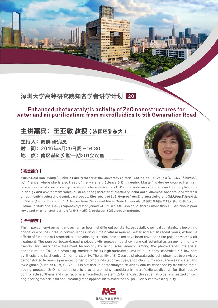 报告题目:Enhanced photocatalytic activity of ZnO nanostructures for water and air purification: from microfluidics to 5th Generation Road