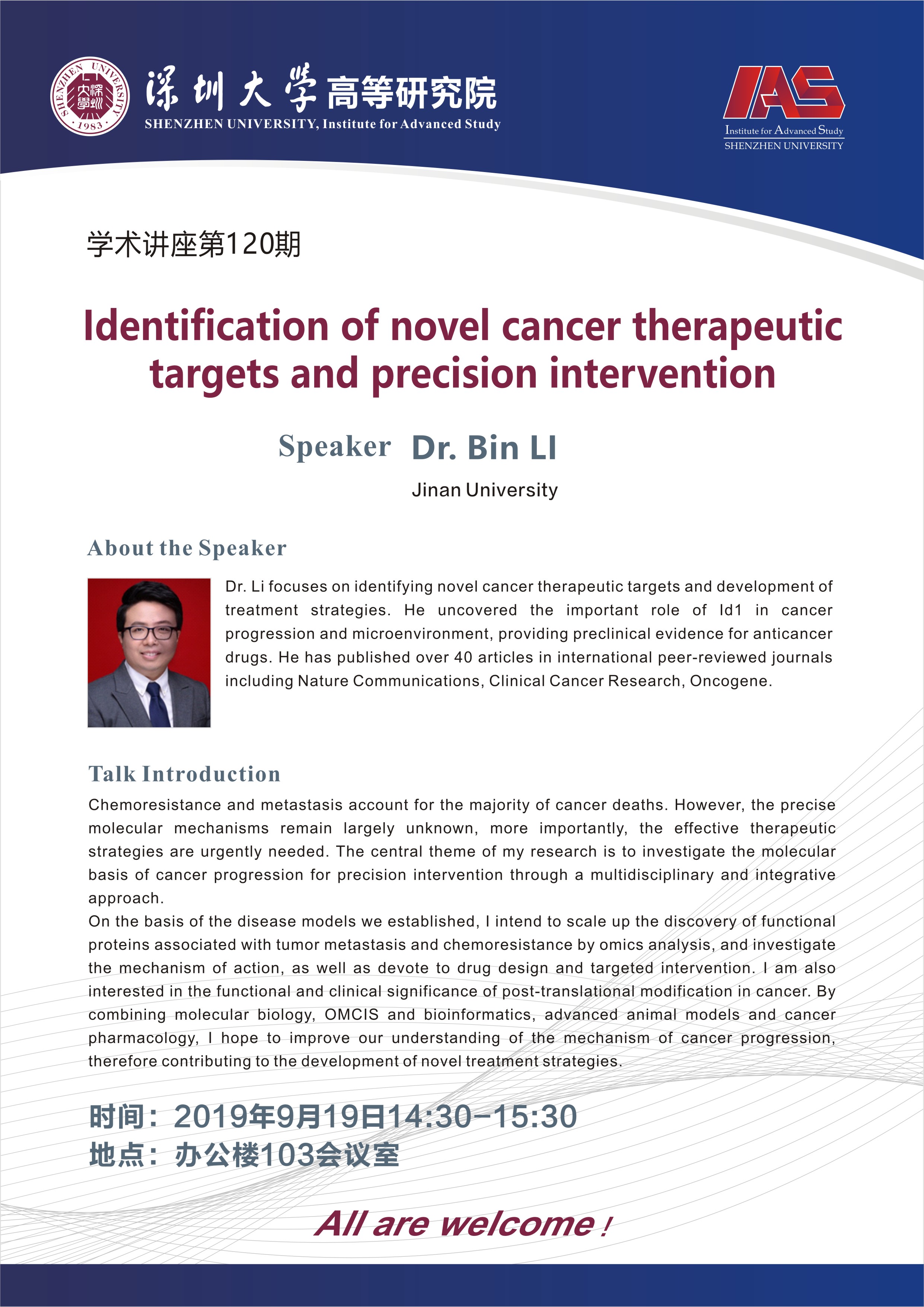 Speaker Dr. Bin LI
